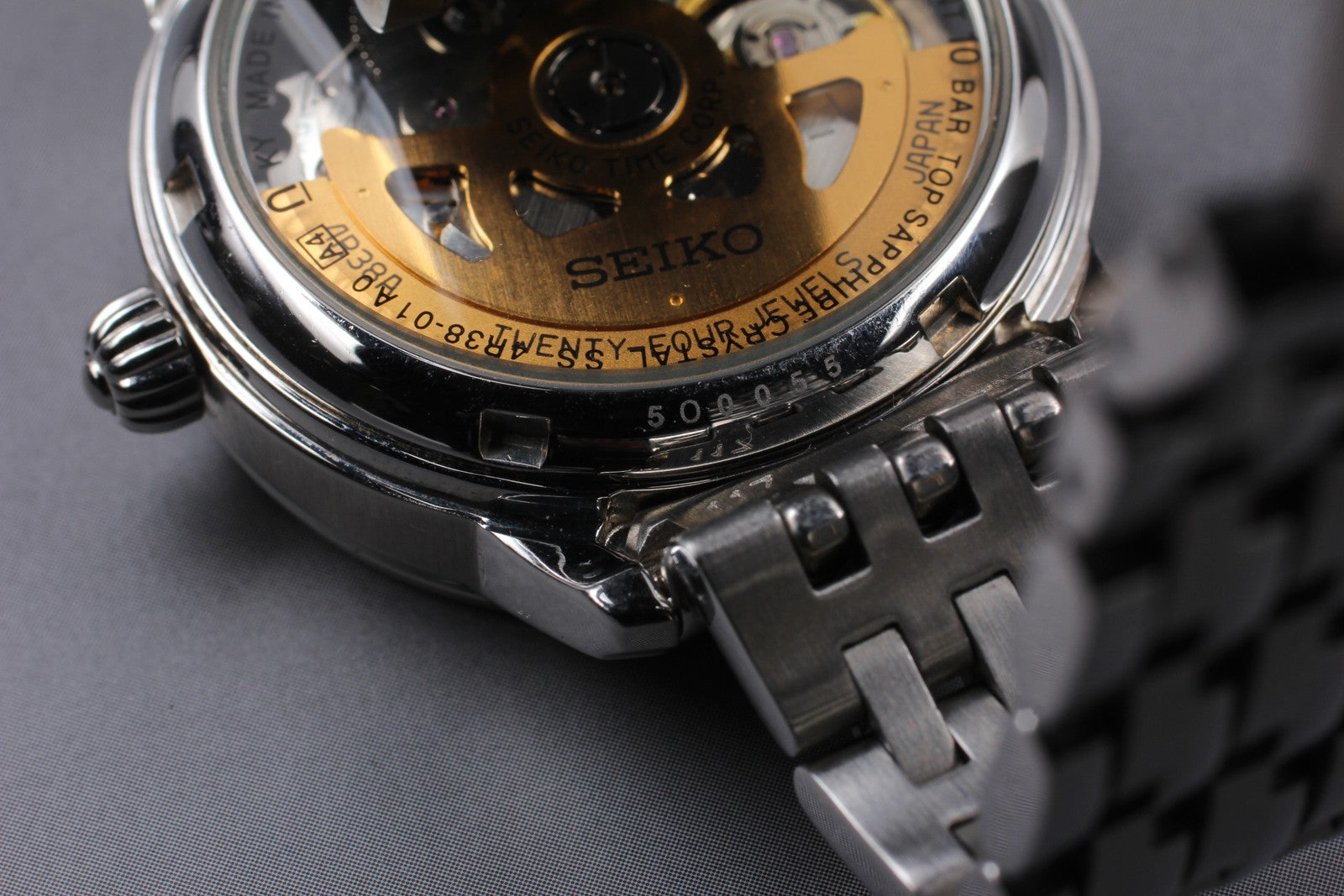 ヴィンテージ[ほぼ新品] セイコー プレザージュ 4R38-01A0 スケルトン 自動巻き メンズ腕時計 日本製