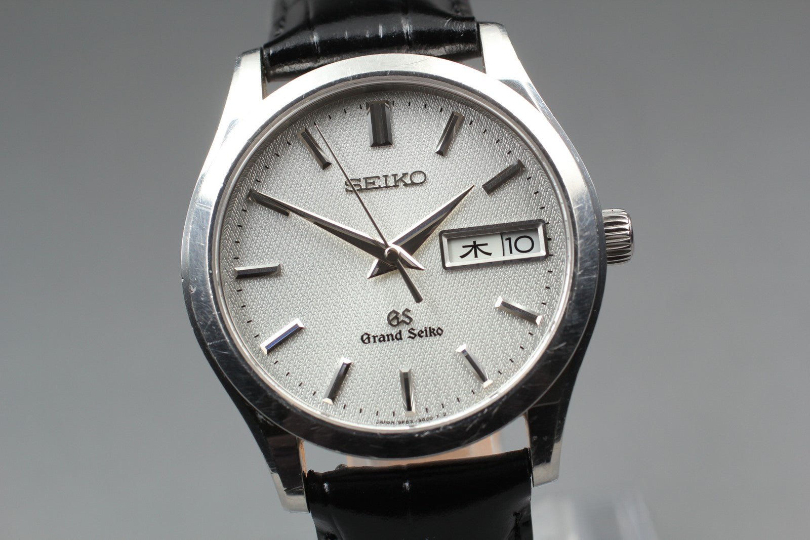 Vtg.1989 [N MINT] Grand Seiko 9F83-9A00 Silver Day/Date Quartz Men's Watch JAPAN